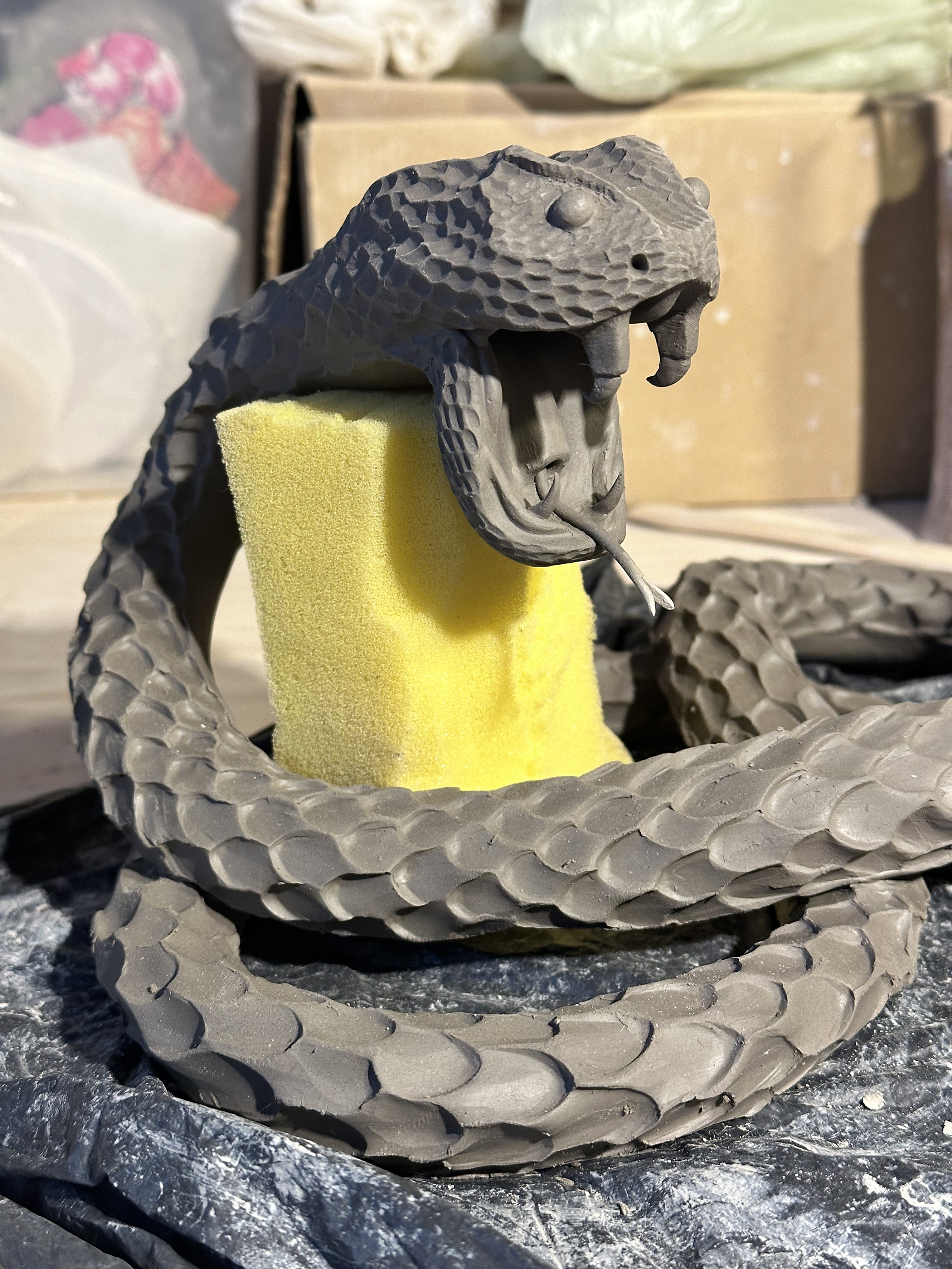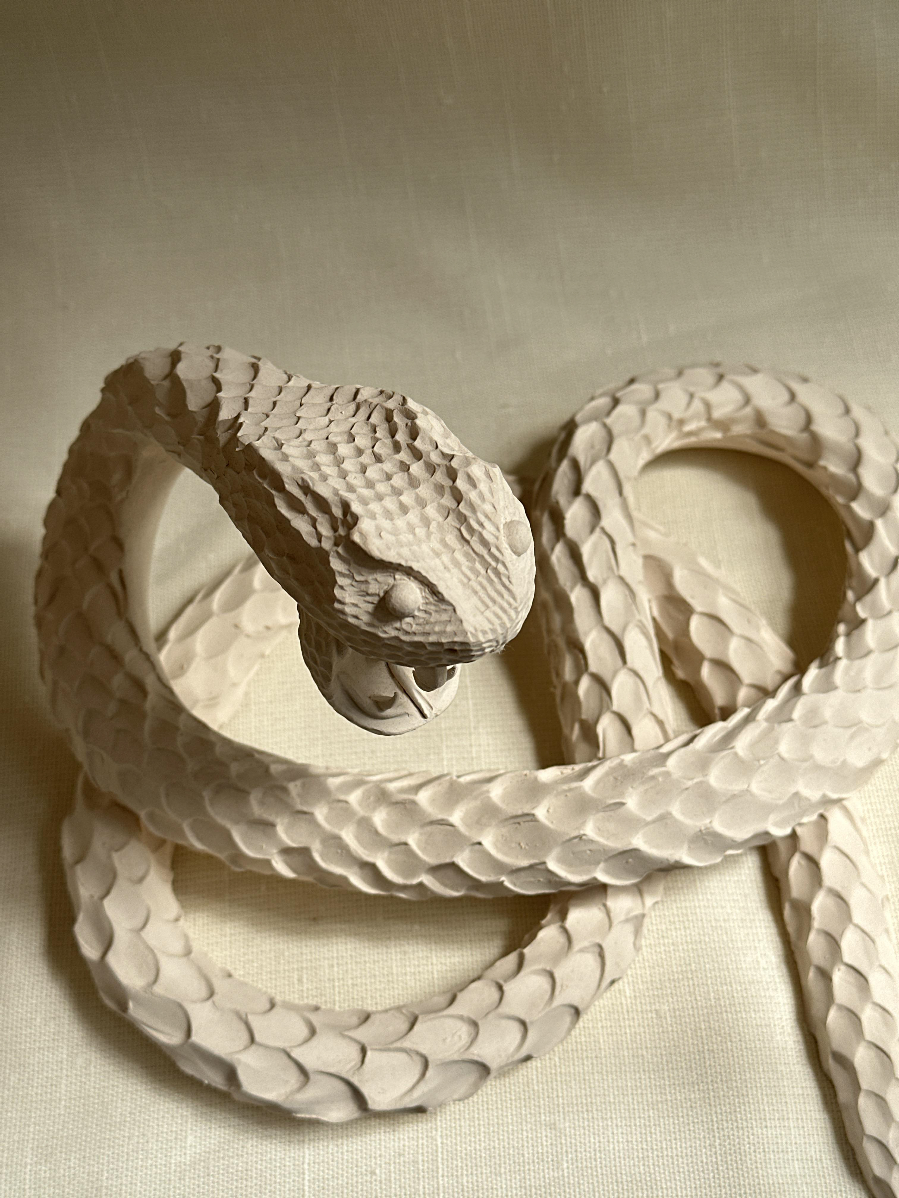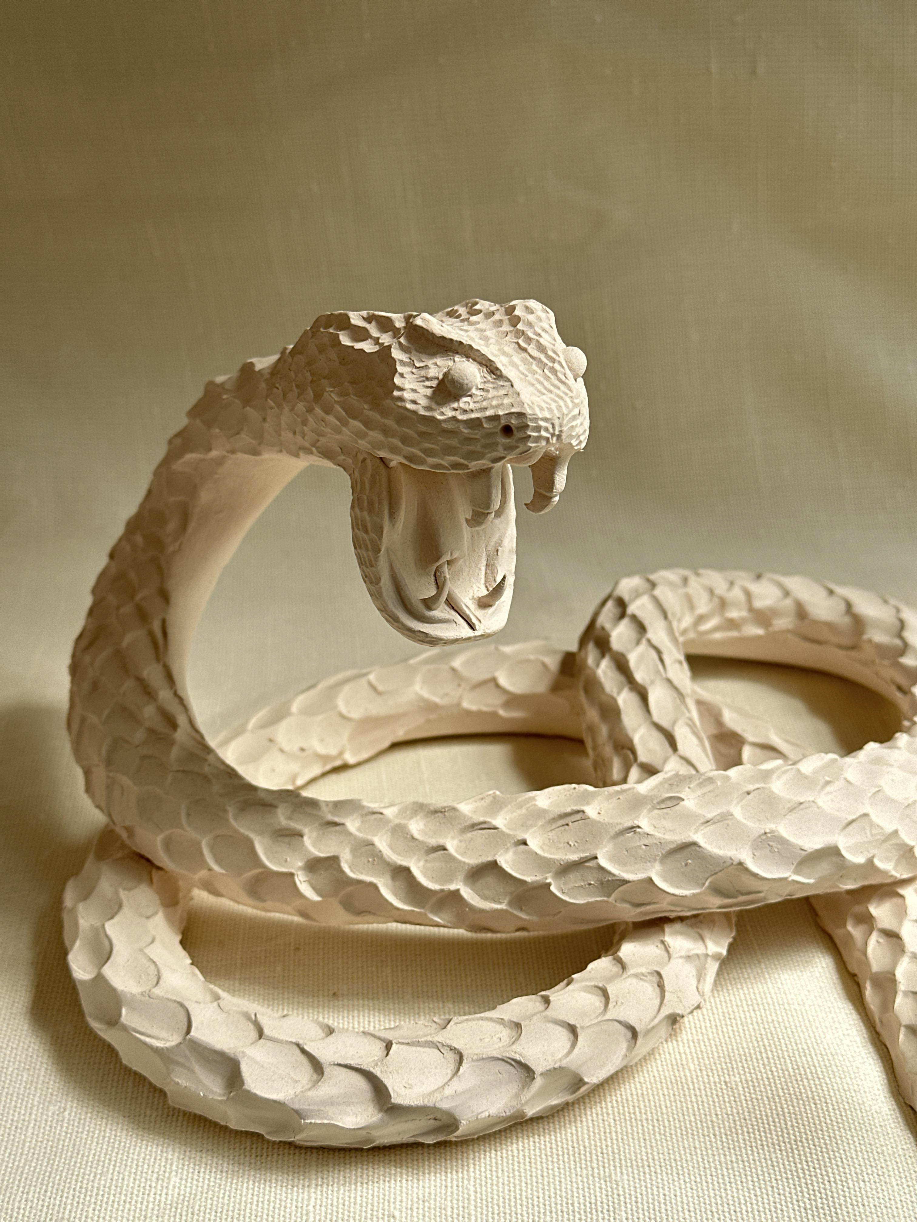 I spent a long time studying the Bush Viper’s form, striving to reflect its natural symmetry and anatomical precision while also giving it my personal touch. The texture changes subtly from head to tail, and I carved each scale with intention, honoring the animal’s complexity and elegance.