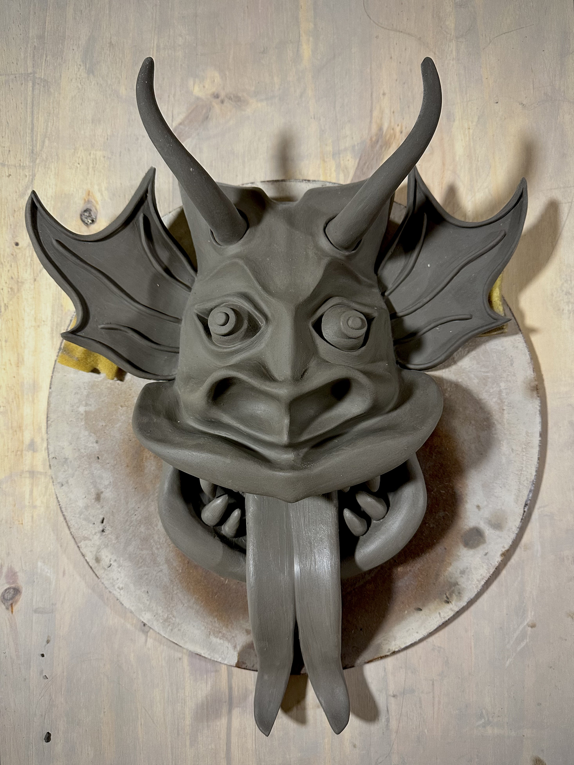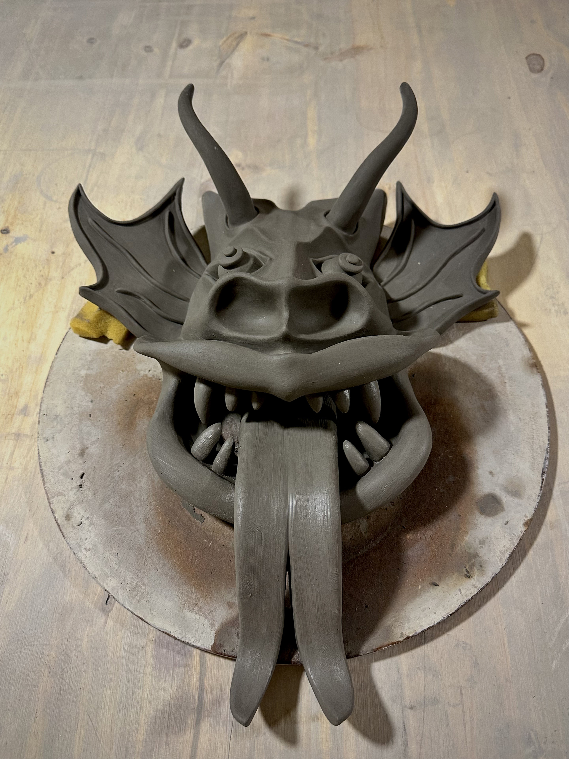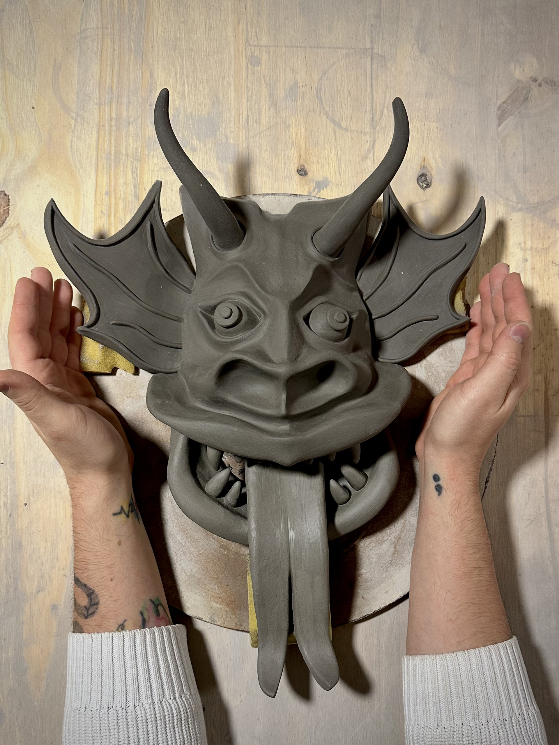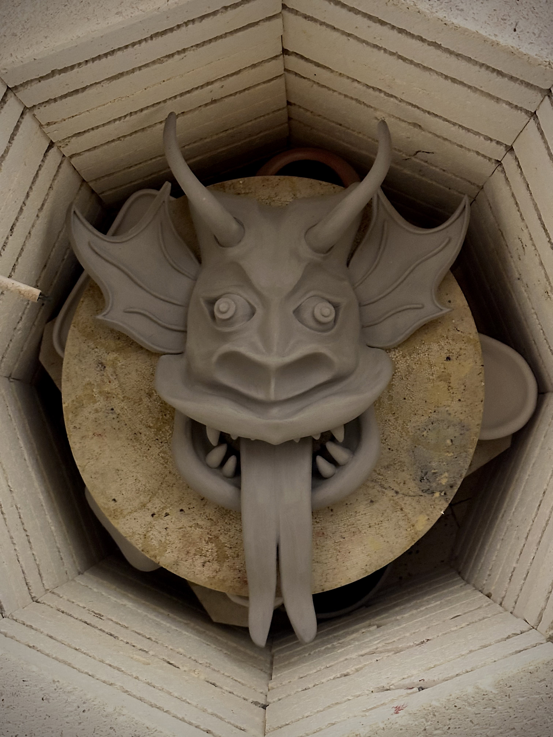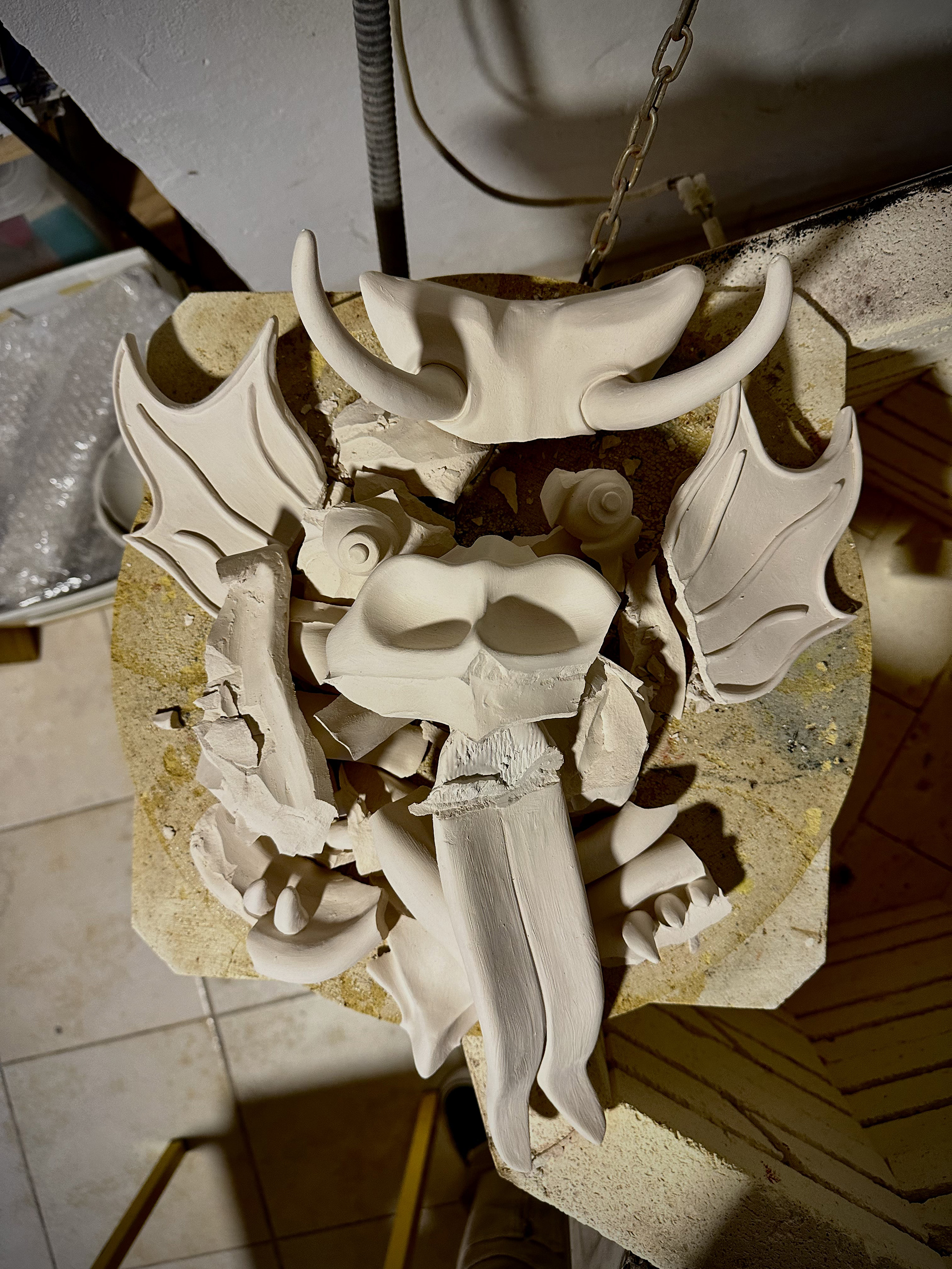 The process of sculpting the mask was incredibly enjoyable — I felt connected to something both playful and profound as I shaped its horns and exaggerated features. But ceramics has a way of humbling us. When I opened the kiln, I found the piece had exploded due to hidden humidity in the clay. I never got the chance to paint or glaze it as I had imagined, echoing the reds, yellows, and blacks that embody the spirit of Yare.